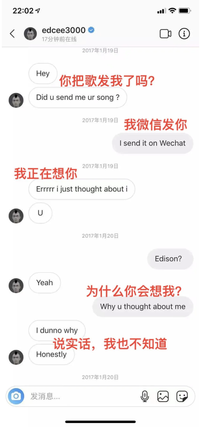 她因为看了陈冠希的记录片,觉得对方是个有趣的人,就随手私信了一个表情,没想到对方很快回复了。