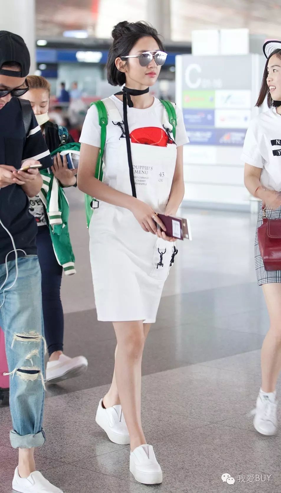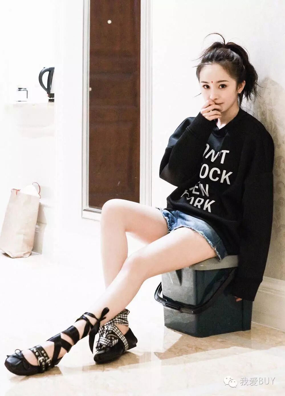 大幂幂真的是超爱眉心一点红,还扎上高马尾实力卖了一次萌,但Buy姐怎么看她都是在秀美腿。