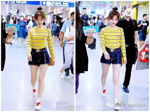 最近,曾经SNH48女团成员鞠婧祎身穿黄色条纹T恤搭配丹宁短裤现身机场,干净甜美,梳着的丸子头给她实力加分,少女范更是呼之欲出。