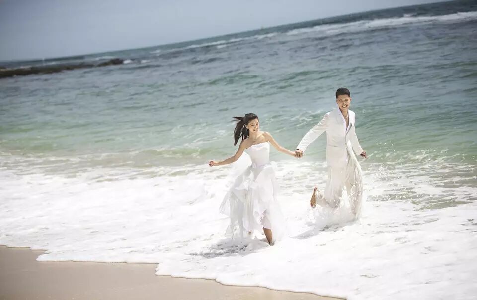 一望无际的大海,两只俊美的小人儿,哎哟哟,没有比这更充满幻想的画面啦!所以大海简直就是婚纱照第一圣地啊!