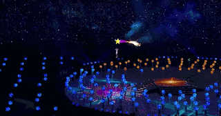 在狂欢后,白、黑、黄(???)三个人种代表的三位巨星,共同领携乐队,合唱了《Fix You》,揭示“Believein Love”的主题,呼吁平等。