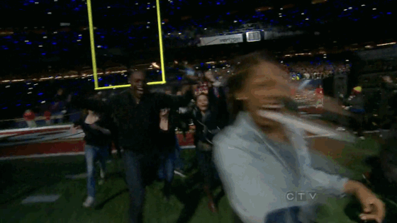 2013年则由外网流量担当,创instagram照片获最高赞的Beyoncé来做中场秀表演嘉宾。what? Queen Bee?开场之前,观众是这样跑进场的。