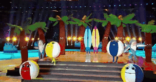 随后她又马上变换舞美,把现场变成了一个热带小岛——