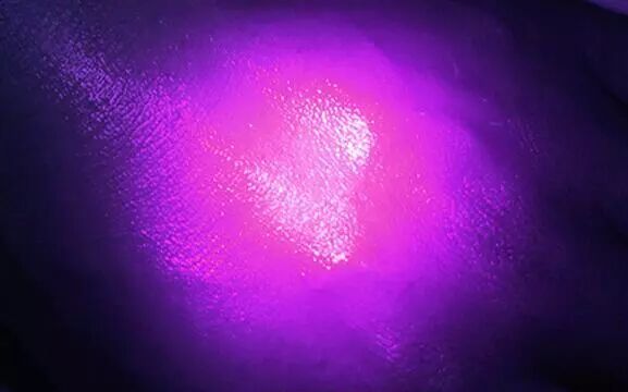 把产品涂在手上,用荧光剂测试灯照射。照射出来呈现紫色,表示不含荧光剂,可以放心使用!如果照射出来是蓝色荧光,则证明产品含荧光剂哦。