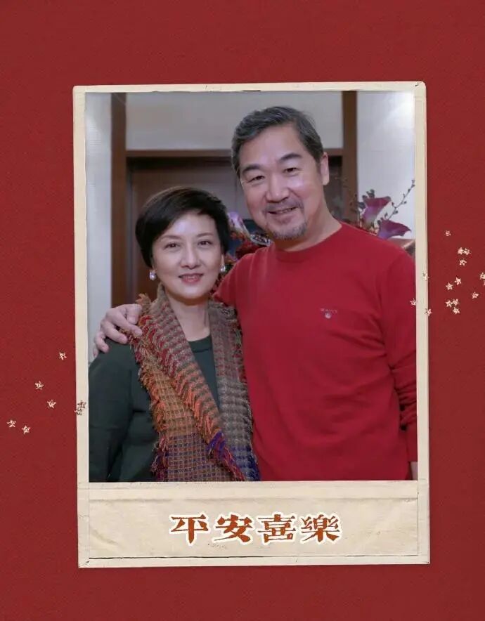照片中邓婕穿着墨绿色上衣,戴彩色围巾,耳朵上的珍珠耳饰十分吸睛,张国立则是一件大红色上衣,一只手搂着妻子,两人对镜头微笑,十分幸福。