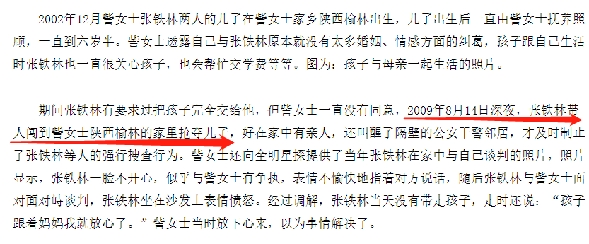 张铁林数次闯入誉晓敏家中抢夺儿子,还强行搜查,甚至惊动了警方。
