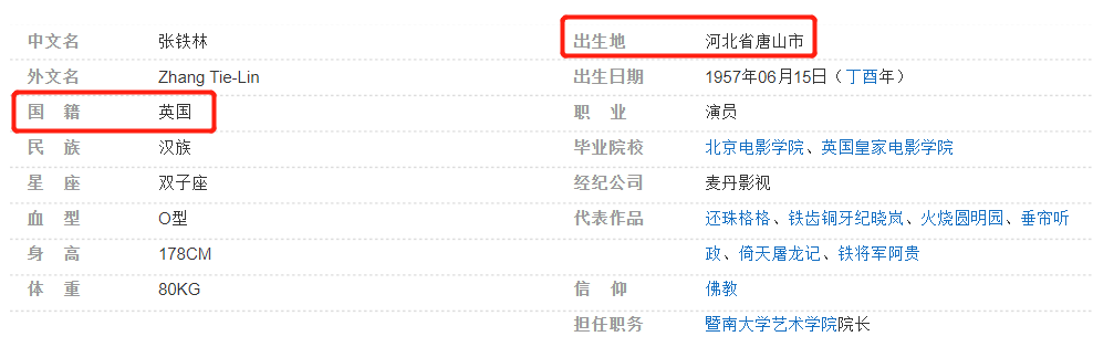 张铁林1957年出生在河北唐山,虽然现在已经入了英国国籍了。