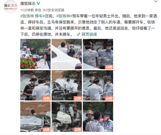 而张铁林的新闻,则是在酒店门口不按要求停车,保安劝阻也不听↓↓
