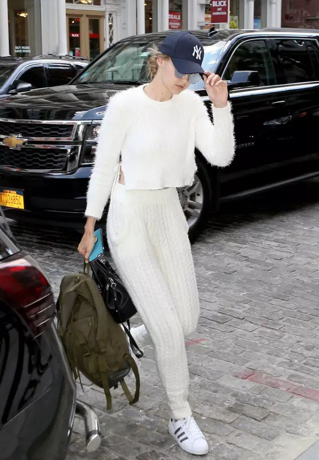 就连下秀后的超模都以针织裤造型出现。