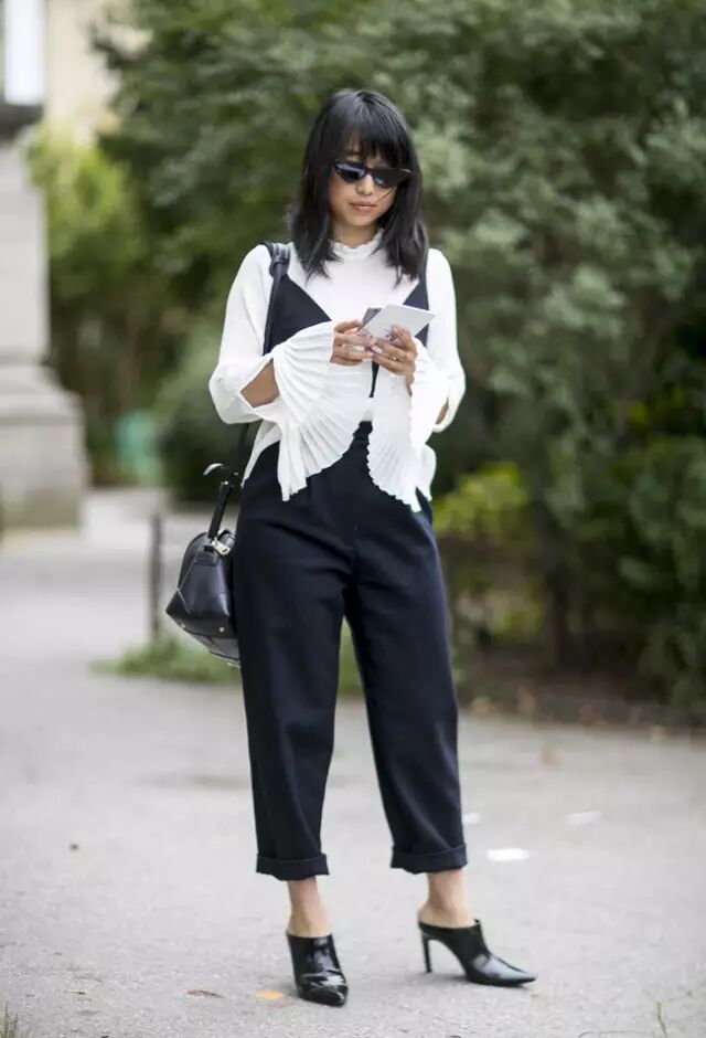 Margaret Zhang的街拍中具有设计感的荷叶边单品成了镜头中的主角。