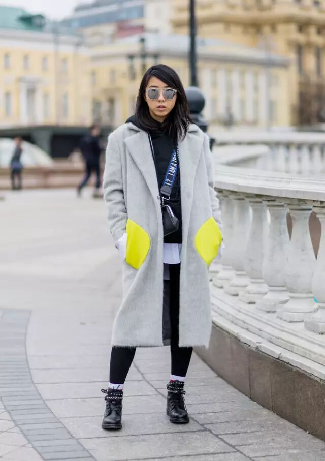 华裔博主Yuwei Zhangzou则是在大衣下以Vetements卫衣打底,简单利落。