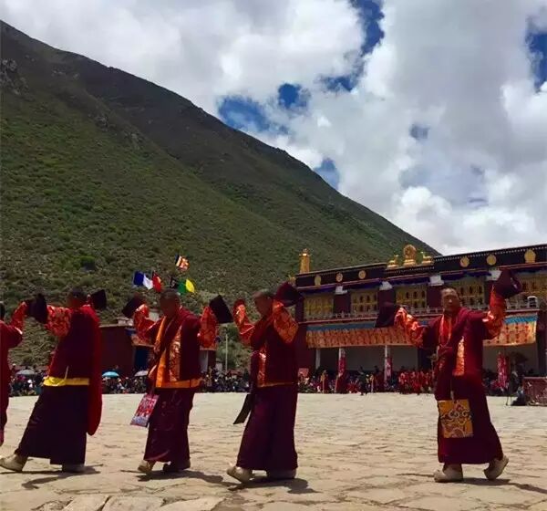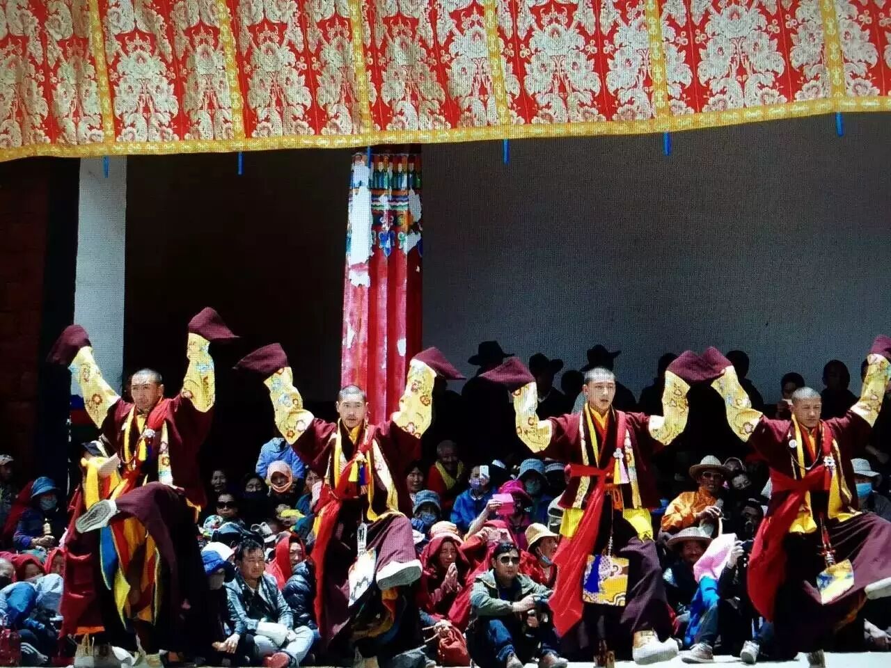 楚布寺贡巴法会上,僧人们展示金刚法舞。