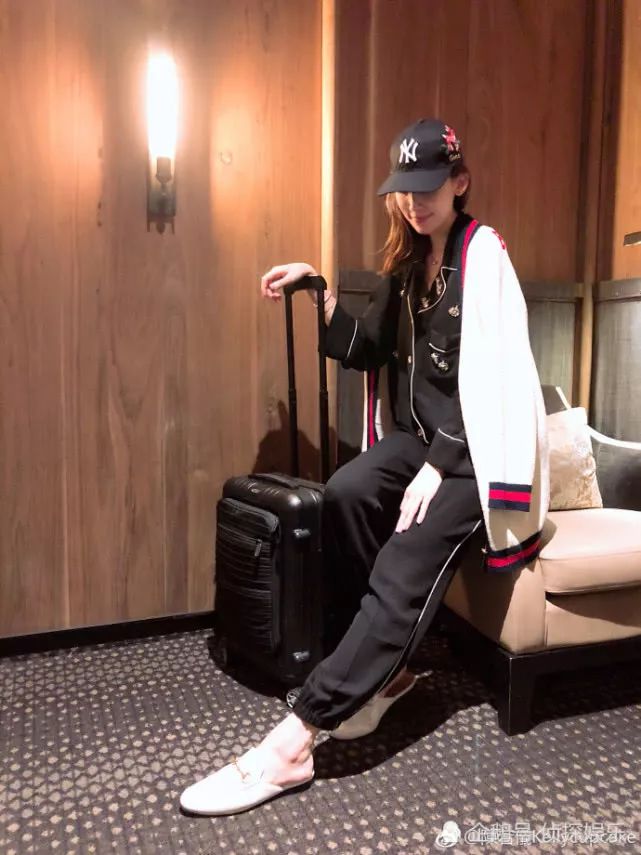 照片中陈若仪头戴棒球帽,身穿黑色“睡衣”套装,肩上还披着外套,打扮非常随意。虽然对着镜头故意低头,但是陈若仪露出的笑颜却显示出了好心情,笑容也非常迷人。看来和老公儿子一起旅行,心情美滋滋的哦。