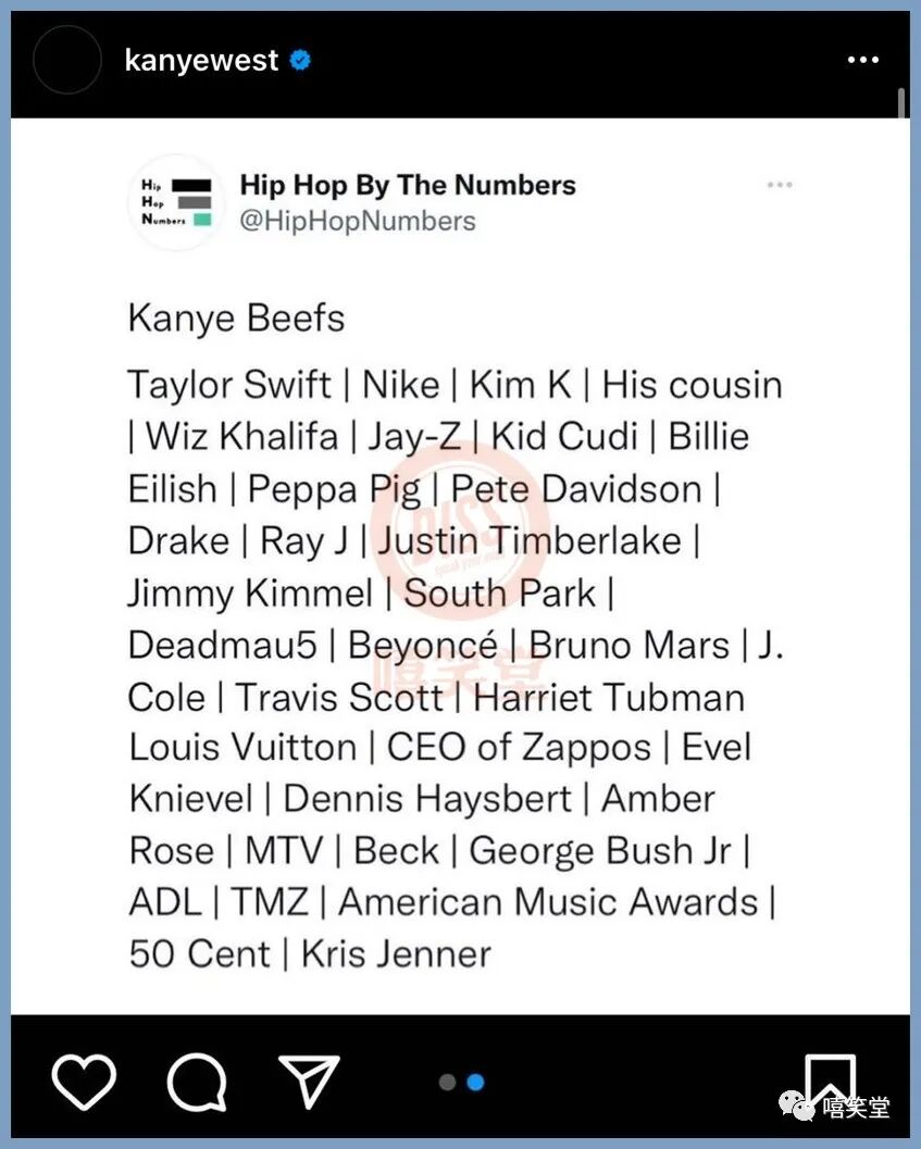 彻底分手!侃爷Kanye West与女友和前妻分道扬镳,专辑却狂卖230万美元 嘻笑堂 欧美男星 2022-02-21 00:43:18 1152 创作不易,用心坚持,欢迎请BaGua喝几杯爱心咖啡!打赏并支持本文 打赏并删除本文 你猜到了吗?侃爷Kanye West最近可以说消息不断。就在前几天,侃爷与女友朱莉亚·福克斯Julia Fox已经分手。这段感情持续了一个多月,两人正式分道扬镳。当然,他们已经说了两人是开放式关系,那其实这个结局可以预料。而在此之后,侃爷也晒出聊天记录,公开舔了一波前妻。Kim:为什么不能将我们的谈话保密?YE:短信是全世界上最喜欢的女神发给我的,而我是你的头号粉丝,为什么不能拿出来炫耀一下?这一度让大家以为,侃爷要重新追求前妻金卡戴珊了。而在情人节,侃爷也没有令人失望,给前妻金卡戴珊送了一卡车玫瑰。但过了几天,网友们却发现事情并非如此。侃爷Kanye West和前妻金卡戴珊已经突然相互取关。YE甚至也取关了金卡戴珊的男友Pete Davidson,他才刚刚关注了Pete一天。是的,你应该早就知道,侃爷在网上风波就没有停过。他还转发了一条和他有BEEF的人员名单,包括Taylor Swift、碧昂丝、Drake、TMZ、他表弟等共计34人。侃爷还调侃表示不够,认为他真实的BEEF名单是这个的两倍长,自己还进行了补充。甚至希拉里克林顿都在其中。但不管网上的节奏如何,侃爷的新专辑注定会再次大卖。众所周知,侃爷已经宣布新专辑《Donda 2》不上音乐平台了,这一消息直接震动了音乐行业。这张新专辑《Donda 2》不会在流媒体上线,只在他推出的播放器Stem Player独家上架。而播放器一个售价200美元,可以用各种方式来播放侃爷的专辑,比如控制人声、鼓、贝斯、采样以及添加效果等。(请点击观看)当然这玩意是否值得,就仁者见仁智者见智了。但是,在侃爷宣布新专辑《Donda 2》不上音乐平台后,他的专属播放器Stem Player在24小时内已经爆卖230万美元。而众所周知,这张专辑甚至还没有发布,2月22日才会上线。众所周知侃爷是非不断,他一度发文多的离谱,连媒体们都懒得报道。但作为全世界最受关注的说唱艺术家,最终一切都得回归音乐。这张《Donda 2》到底会是什么水准?让我们拭目以待。-END-点击【阅读原文】查看历史文章突发!Rapper安大魂因抑郁症去世再上热搜!一网站上传吴某凡音乐被查处新疆说唱内战!艾热被那奇沃夫兄弟Diss情人节!王齐铭宣布结婚,小鸭哥却分手了正式开战!Kanye West居然成立“侃爷宇宙”彻底翻车!说唱歌手D.ark迪雅克居然离谱言论 创作不易,用心坚持,欢迎请BaGua喝几杯爱心咖啡!打赏并支持本文 打赏并删除本文 感谢您的支持鼓励,我会继续努力的!文章地址:用户邮箱:打赏金额:USDT 请输入数字点击”去打赏“,即可进行打赏支持本文章哦 Kanye West About the Author 嘻笑堂 功能介绍:雅俗两面,嬉笑之间。关注一切有趣的事物。 Related Posts 丁太升吐槽!让李荣浩《乌梅子酱》引发争议!天天登上热搜! 2023-02-25 23:59:38 歌手杨培安发文DISS假唱现象!却被偶像王一博粉丝冲了! 2023-01-17 00:56:25 合作舞台!吴克群、吴建豪、ICE、马頔《Interstellar》现场怎么样? 2022-09-30 00:49:09 侃爷Kanye West反驳福克斯的报道!表示他有70亿美元 2022-04-10 01:45:37 彻底分手!侃爷Kanye West与女友和前妻分道扬镳,专辑却狂卖230万美元 2022-02-21 00:43:18 发表评论