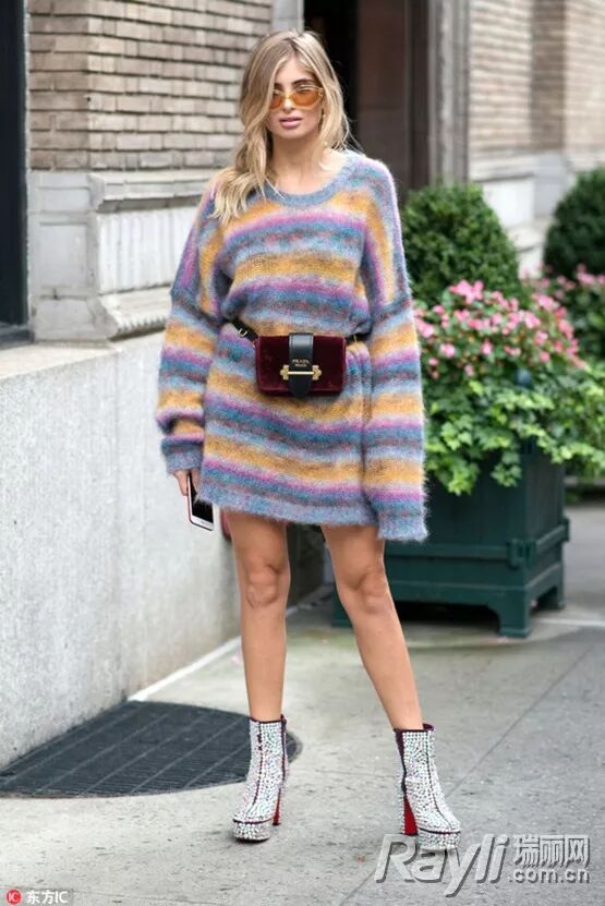 最后一个大招,就是给你的毛绒单品加一个腰带吧,大热的腰封,腰包都可以被你充分利用起来,强调出腰线位置,来达到优化比例的神奇功效吧!