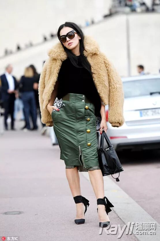 穿毛绒的毛衣和外套时,请选择大一号的宽松款,搭配紧致修身的下装,利用松紧对比,才能显瘦。铅笔裤或修身半身裙是你不错的选择。