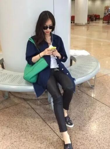 穿一身帅气吸烟装,搭配尖头鞋,酷得轻松,脸蛋优雅又甜美。