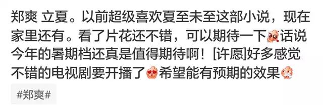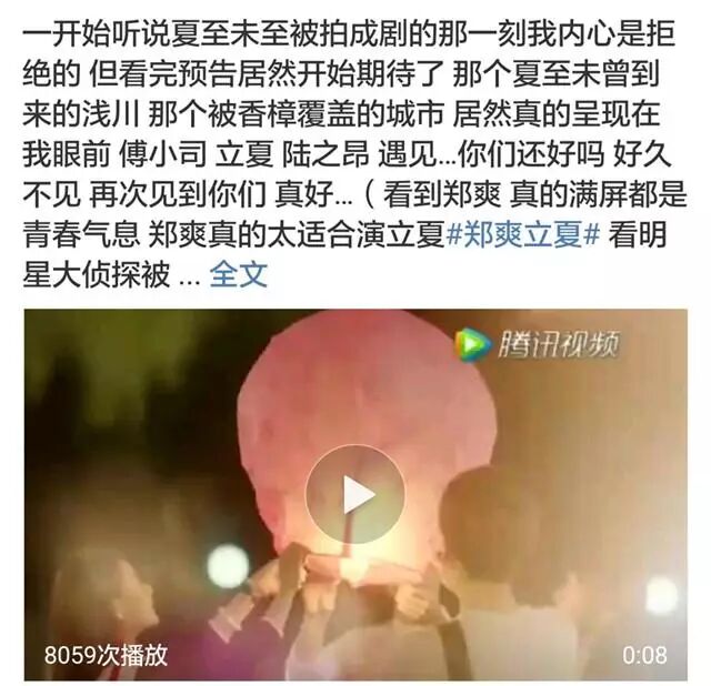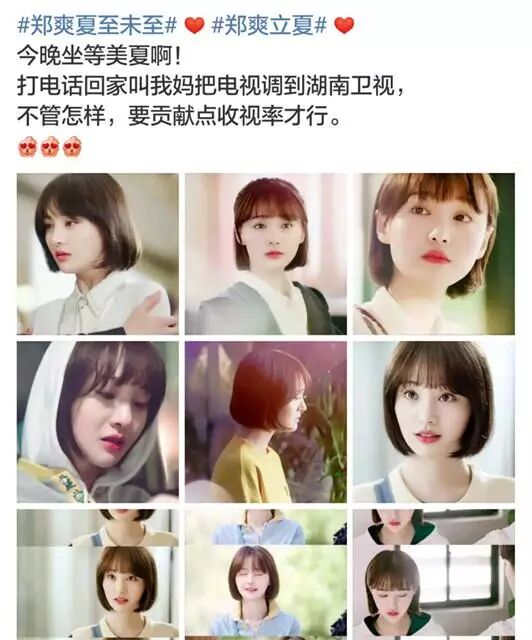 而从昨天下午开始,郑爽的粉丝就不断地在微博造势、表达期待,并把“郑爽 夏至未至”送上了热搜榜。这样特意“打电话叫妈妈打开湖南卫视”,一定要“贡献点收视率”的粉丝行为,竟然真的有点萌。这位妹子,你也可以打开腾讯视频,再贡献点点击量哦。