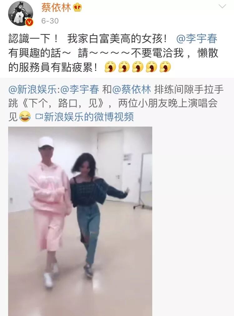 ▲蔡依林也会在微博上cue李宇春,右边这位女孩要不要这么可爱呀?
