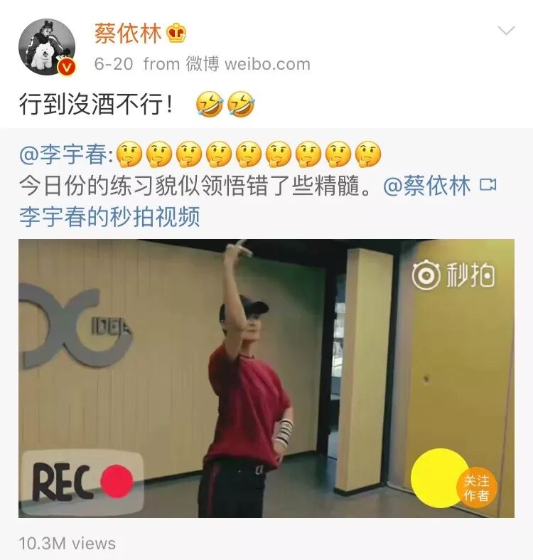 ▲Jolin自己也超懂梗,自己转发李宇春的微博说,“行到没酒不行”。