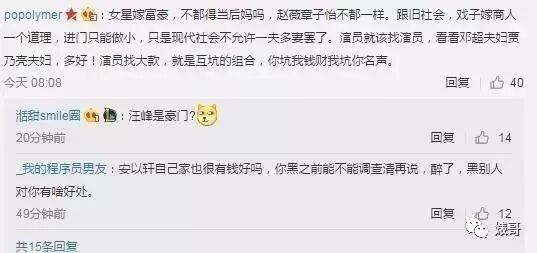 网友留言:“女星嫁富豪,不都得当后妈吗,赵薇章子怡不都一样。看看邓超夫妇贾乃亮夫妇,多好!演员找大款,就是互坑的组合,你坑我钱财我坑你名声。”不过安以轩自己家的背景也很强大哦~