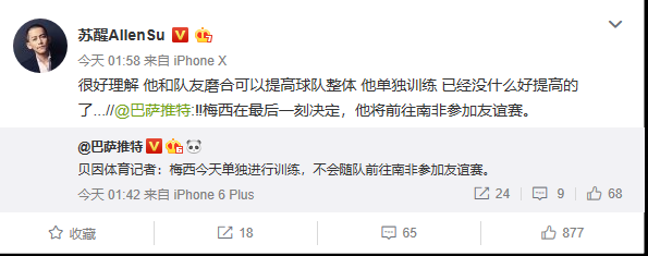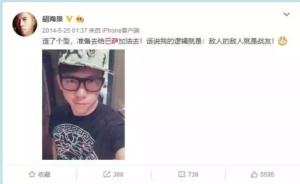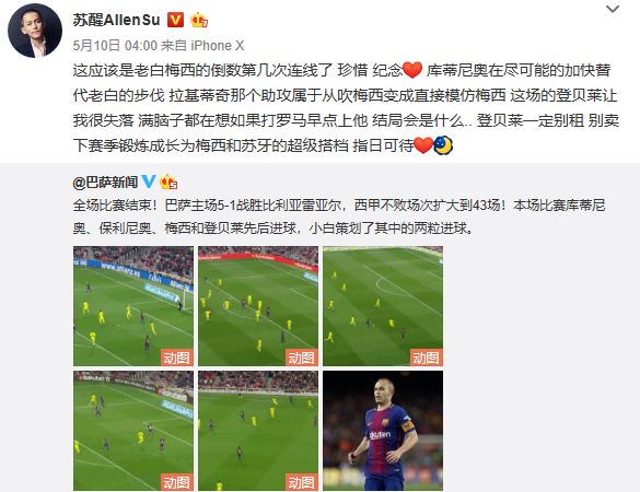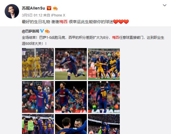 歌手海泉在上节目的时候也表示自己从小就是巴萨的球迷,在微博上也能看到他对巴萨的热爱。