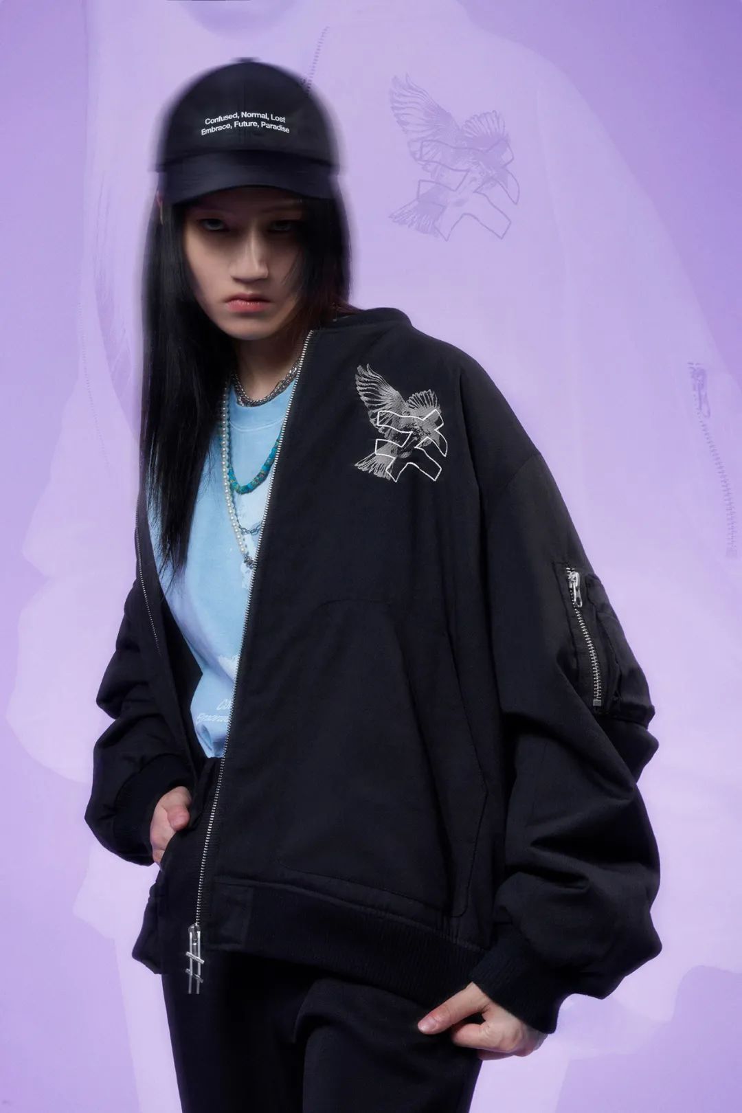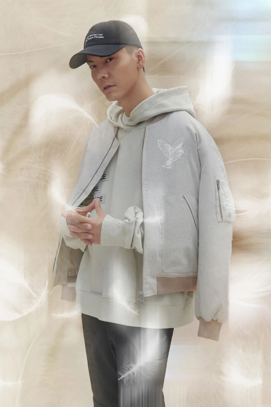 「MA-1 飞行员夹克」在秋冬季的热度无需多言,在设计师系列中,对版型稍作调整,并在拉链、胸口处注入品牌标志「≠」符号及主题飞鸟印花,更具辨识度;