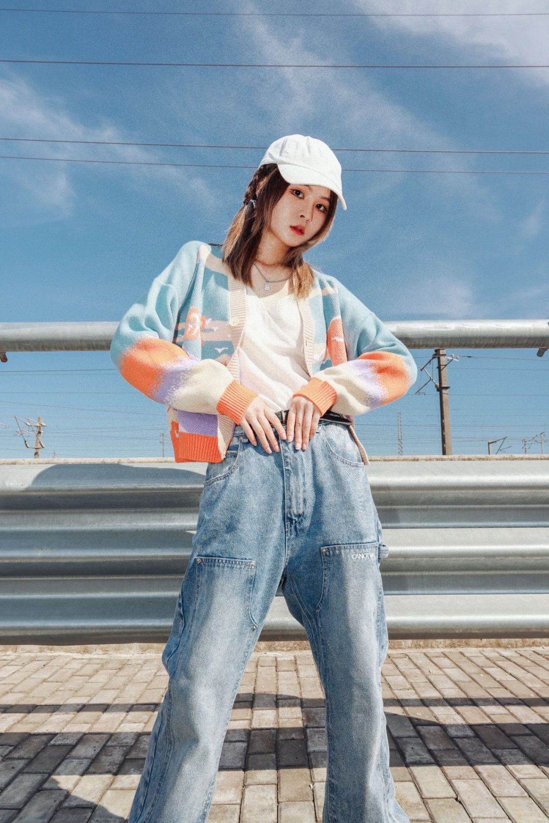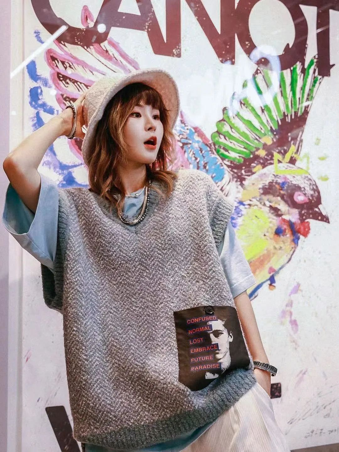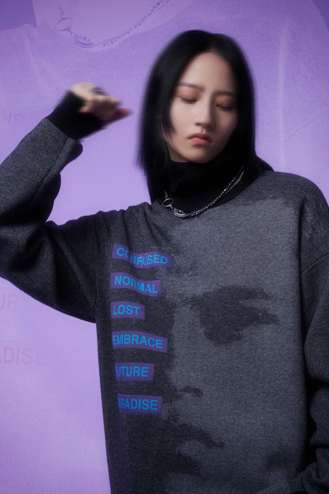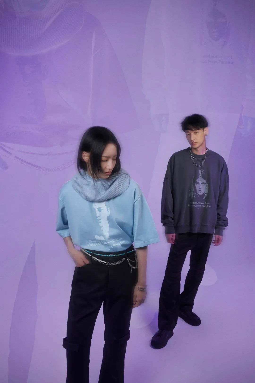 「针织背心」向来颇受日系及先锋玩家的青睐,本次设计师系列选用薰衣草紫、雾霾蓝色,辅以人像贴布呈现,叠穿、单穿均造型感不俗;