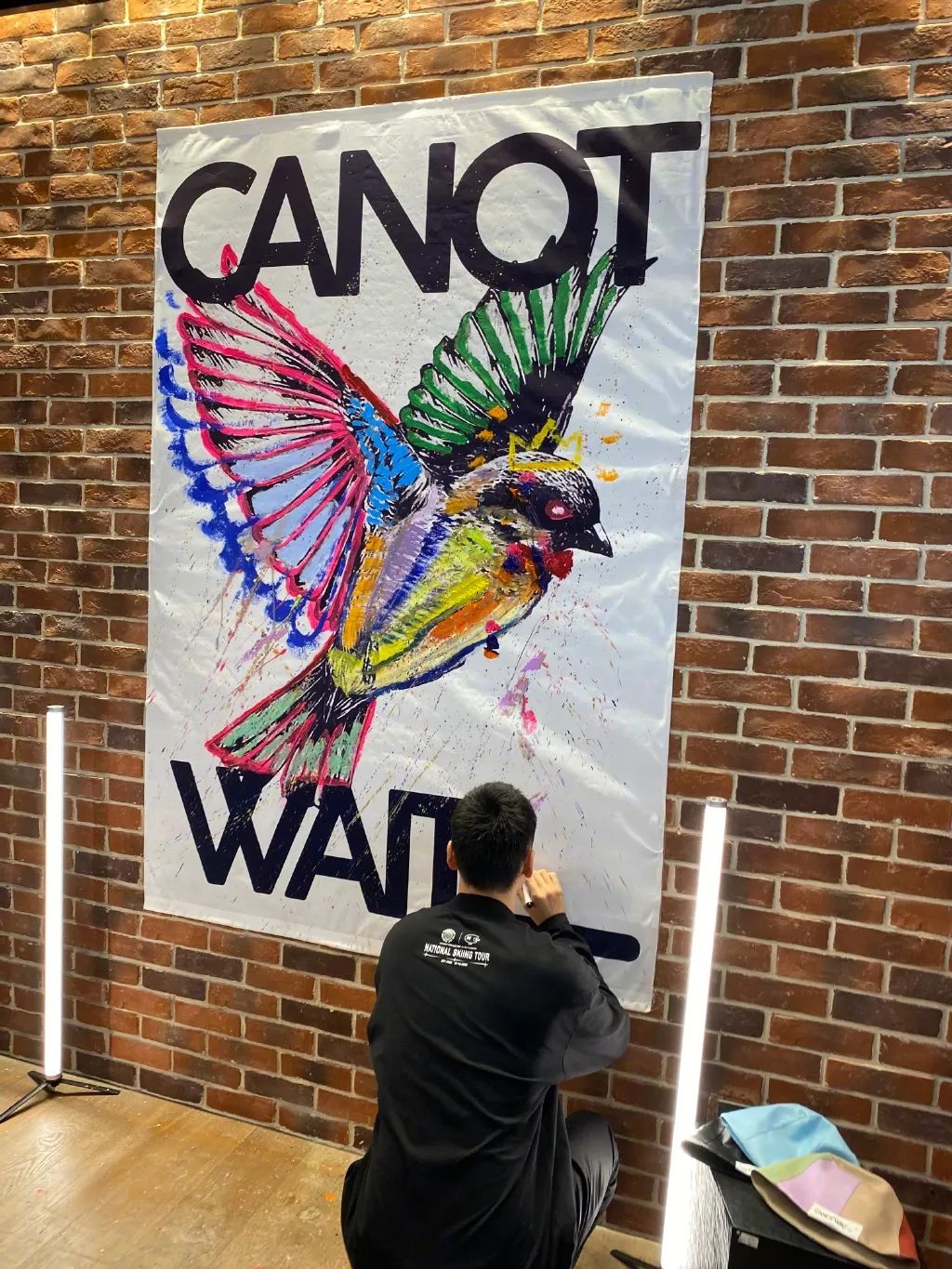 陈伟霆为设计师系列制作的巨型飞鸟挂画涂色创作,也在快闪店限时展出,并成为「打卡点」,均令该系列未开售、便已积攒了高话题性和认知度。
