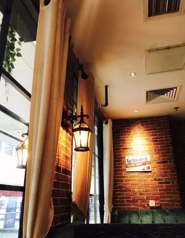 店内装修主要是以最原始的红砖块堆砌而成,配以鲜红的墙壁与绿色的座椅,两色相撞,别有一番韵味,墙上的书架和镜子画框的摆设更是体现了老板的用心,朴实之中不乏精致。