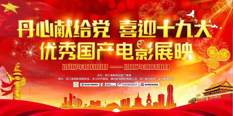 10月18日-10月31日期间,东阳横店电影城开展《丹心献给党 喜迎十九大》优秀国产电影展映活动,顾客来影城(金天地店、城中店、城西店)观影电影展映特惠专场影片《战狼2》 《血战湘江》 《龙之战》 《缉枪》 《二十二》 《冈仁波齐》可享受每张票特惠价10元,观影《空天猎》 《十八洞村》 《时间都去哪儿了》可享受影片最低票价购票。