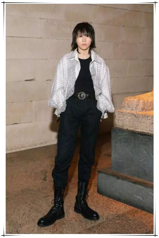 不得不说窦靖童的打扮真的很让人难以理解,发型风格也是很奇葩的,不过还在她的身材高挑,个子高,穿上这款偏中性的服装也丝毫没有违和感,灰色的西装外搭搭配白色内搭,再加上一条黑色阔腿裤,这样比较随意的搭配也是蛮酷的!