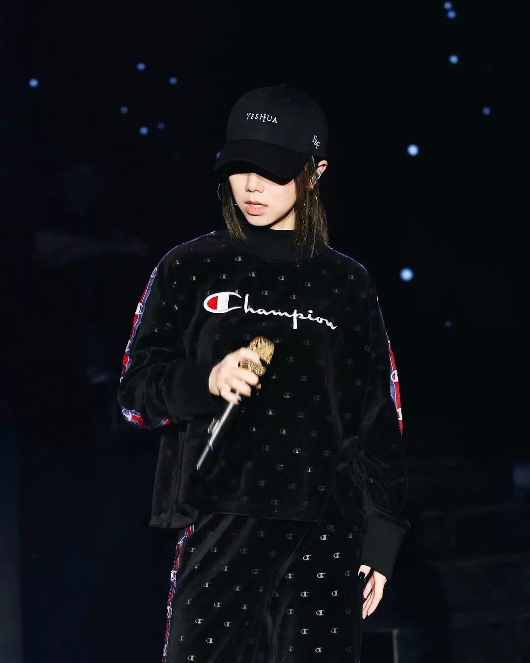 在邓紫棋的黑泡造型里,最常见的搭配就是dad hat+oversized+紧身牛仔裤,让人看了忍不住想说,“紫棋真的很喜欢戴帽子!”