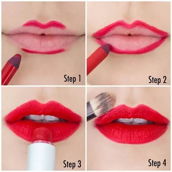 改造方法:大多数的薄唇只需要,大胆涂抹全唇,大胆勾勒唇峰,加上适当的向外晕染。