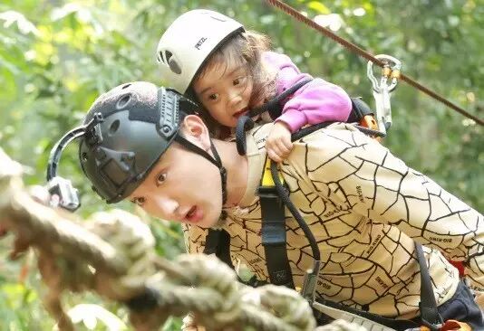 责任感爆棚!自己恐高还能照顾北鼻的情绪,在高空把她背在身上一起走。