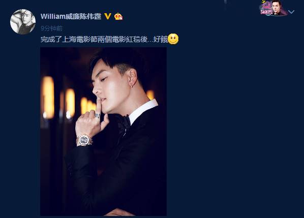 红毯之后,陈伟霆发微博啦,他的感想是……好饿(呵呵)