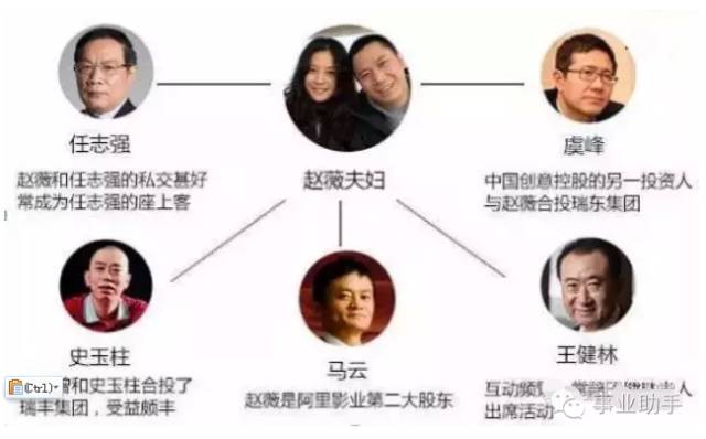 马云:赵薇跟马云关系不是一般的好啊。首先他们是商业伙伴。她凭借入股阿里影业,短时间内身价就暴涨了40多亿港元,成功套现后净赚10亿港元。