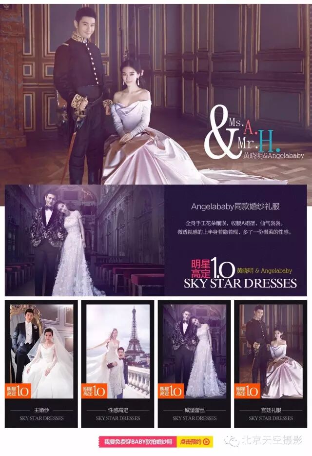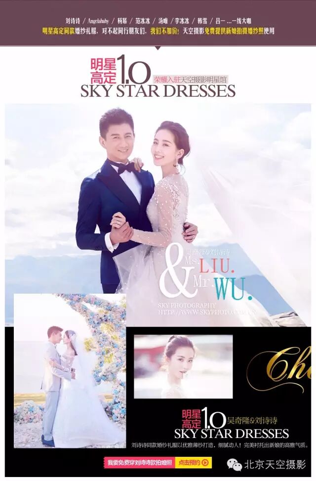 在北京,如此全面的明星高定同款婚纱用于婚纱照拍摄,仅存于天空摄影,明星最多、款式最多、风格最多!