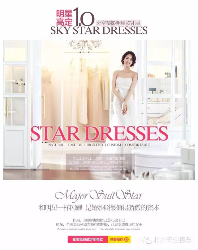 天空摄影明星礼服馆,大牌的选择、大牌的婚纱、大牌的视觉、大牌的闪耀;
