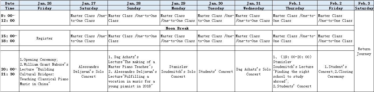 ·Each person is allowed to take 4 master classes or one-on-one classes. Each class is 45mins long. And the specific class type is arranged by the committee.