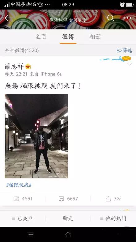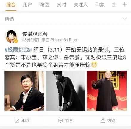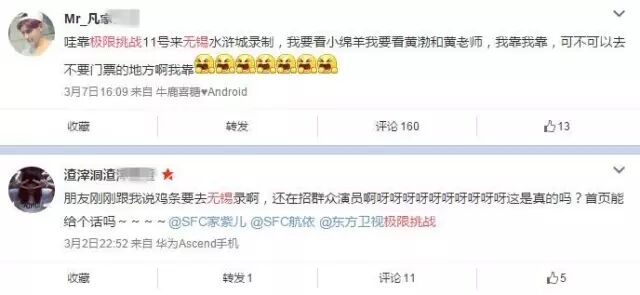 wistarie失眠中:极限挑战来无锡了,整个办公室可能都要翘班去三国城了。所以全员加速中啥时候来啊!?