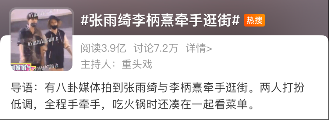 通稿已然铺天盖地,单是两人牵手逛街,就迅速获得3.9亿热度,登上热搜榜,能让无数人高呼:“太甜了!”