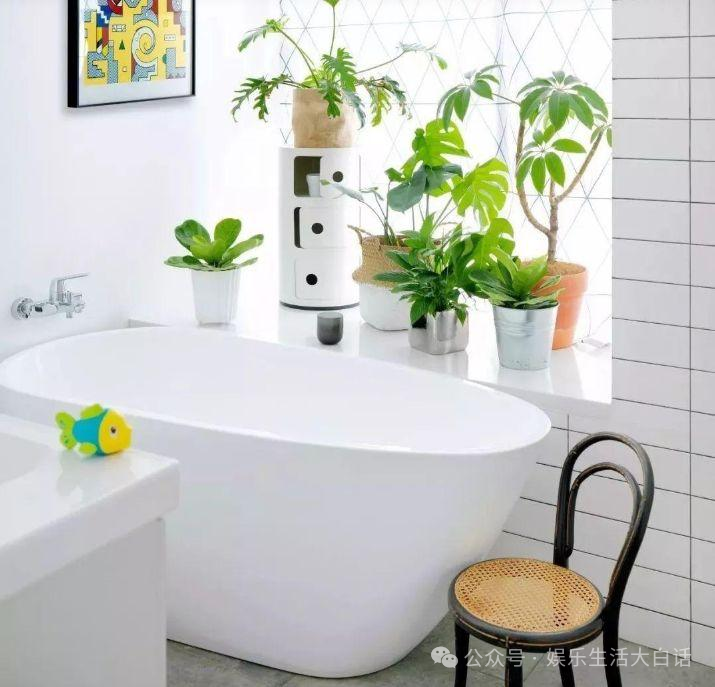 卫生间的设计则以纯白色为主,创造了明亮干净的空间。大浴缸的设置让人可以在舒适的环境中尽情沐浴,绿植的点缀使整个空间更显活力。这种布置不仅美观,更体现了她对家居生活的热爱和用心。