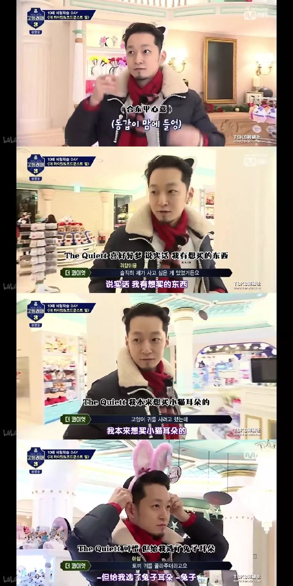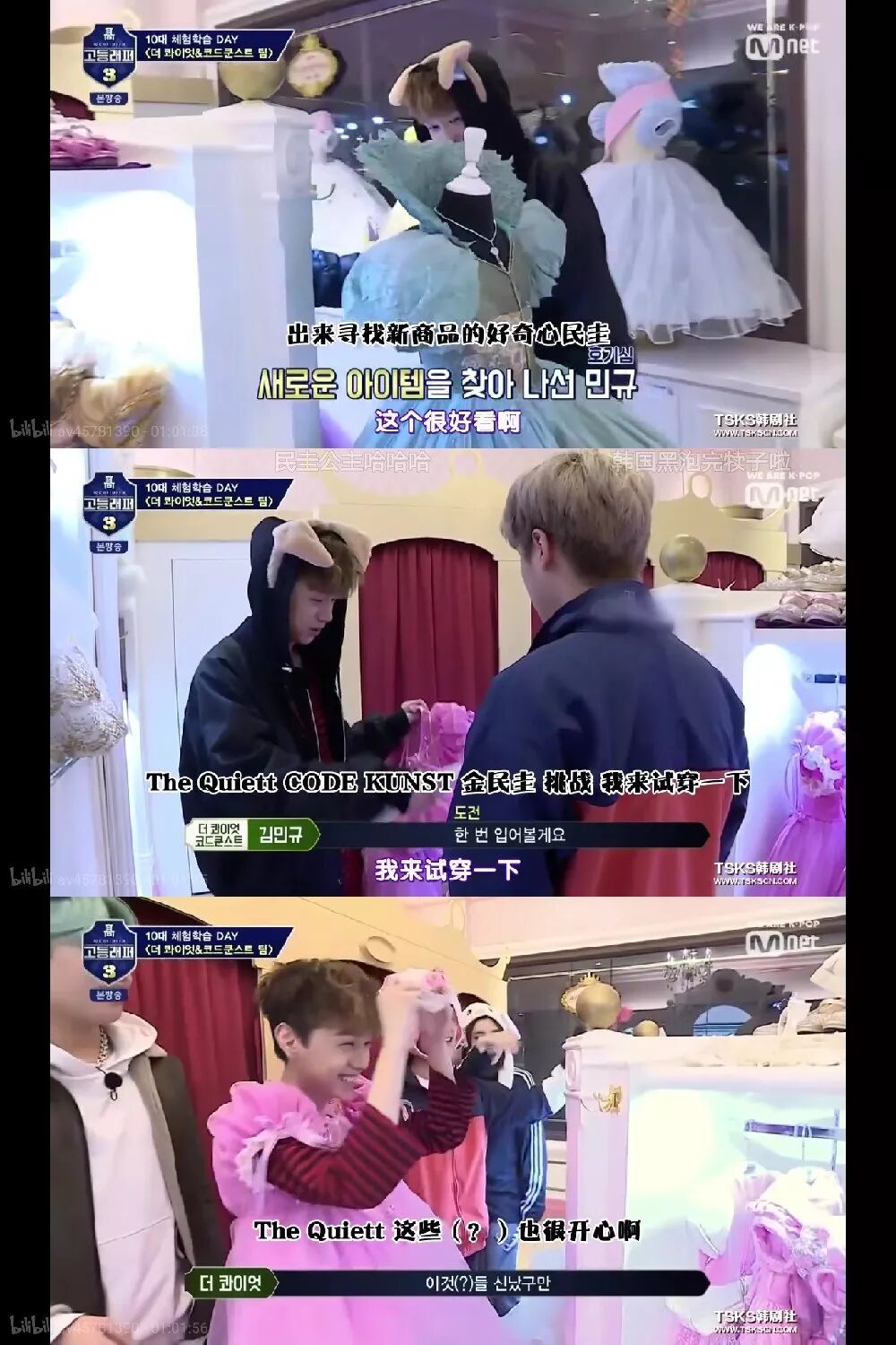 金民圭小哥哥,是Kiff Clan的忙内,rap实力无可挑剔,但是你以为他会安安静静地用实力和颜值圈粉吗?不,这孩子走了一条沙雕路线,敢跟赵老师用平语、敢给安静叔戴兔子耳朵,敢穿粉红色公主裙,确认过眼神,是个要成大事的人。果然kiff都是实力派的小可爱呀!