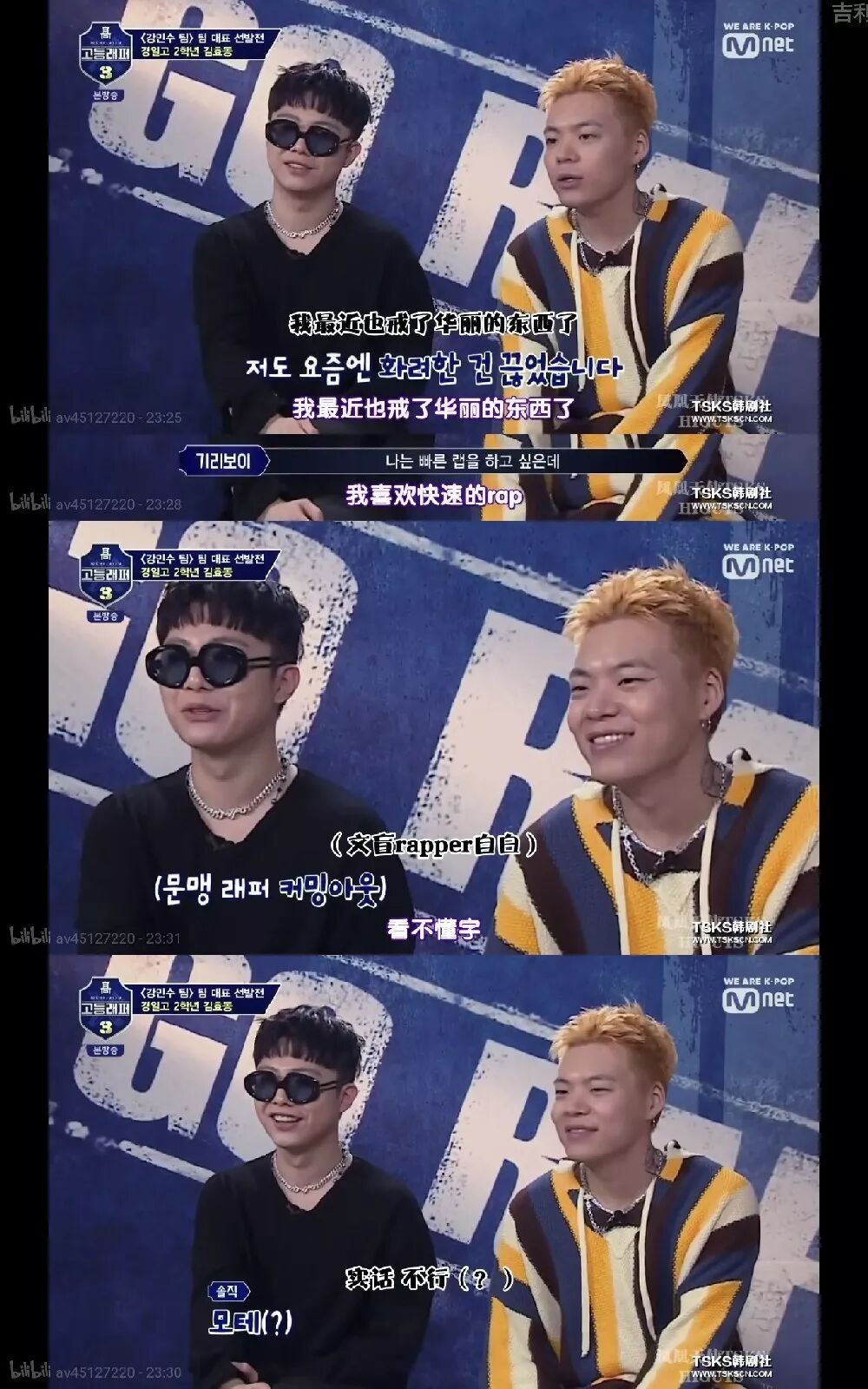 这次的高等的rapper们也没有让我们失望,选手们都是实力派,而且个人特色鲜明,性格也很好(目前为止还没有恶魔剪辑,普露米们可以放心追星啦!)。