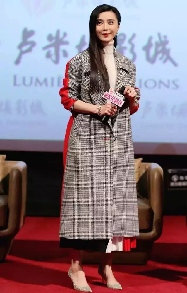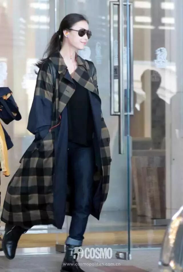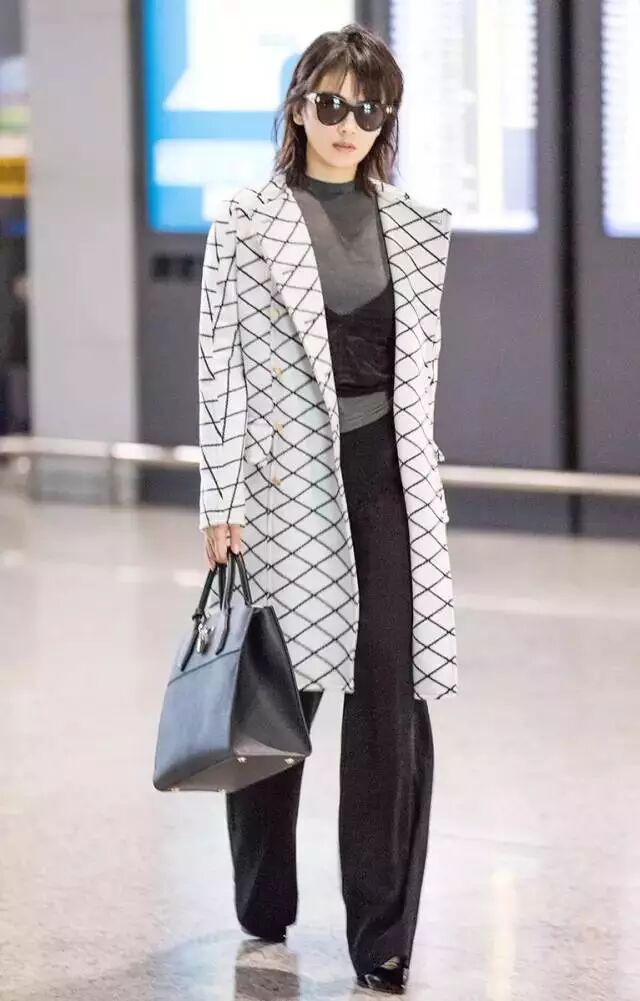 最近倪妮的机场街拍中也穿了一件长款的格子大衣,