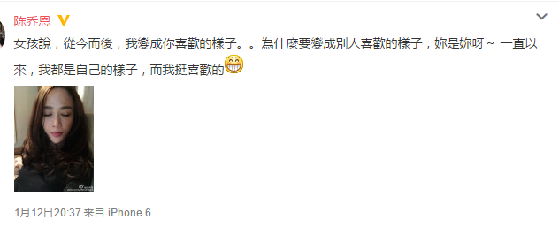 她是《命中注定我爱你》中便利贴女孩陈欣怡 她就是陈乔恩。除了在台湾的发展,她也在内地有很多的发展。 《佳期如梦》中善良的女子尤佳期 《激浪青春》中和黄晓明合作,她是一个在男友面前爱发小脾气的同时也有着柔情似水的阮小月 《胜女的代价》中的林晓洁 《笑傲江湖》中的东方不败 《锦绣缘华丽冒险》 在她22岁的时候,她就已经出道了。那个时候,她还只是个默默无闻的小角色。 《薰衣草》 《中国那么大》 出道15年,她捧红了不少的男神,真的是名副其实的“旺男主角”。 《王子变青蛙》让明道在很长一段时间里是少女们的梦中情人,在当时创下了台湾偶像剧的收视纪录。然而作为女主角的陈乔恩却没有像明道一样得到那么高的人气,但是陈乔恩的旺“夫”生涯却就此开始。 《命中注定我爱你》,不仅是台湾偶像剧史上尺度最大的偶像剧,还创下了新的收视纪录。阮经天也因这部戏正式跻身于台湾一线小生的位置。 这个姑娘捧红了无数的男神,对于自己的爱情。恐怕就是那段和霍建华的爱情吧! 两人的定情之作《千金百分百》 她是霍建华唯一公开的女友,不过一切都已经是曾经了。 现在的她,可是男神的收割机啊! 陈乔恩&刘德华 陈乔恩&张智霖 陈乔恩&王凯 陈乔恩&靳东 她依旧在不断努力着,不仅仅是在演戏方面。她的每次出场都是这样的.. 请在惊艳她的美的同时,也看到她的努力 网上有句话,很流行:分开以后我变成了你喜欢的样子。 但是陈乔恩却是这样说的: 而且前一段时间网上有说 网友:“这是它的工作好吗?有啥可怜的,人都有累死的,更何况是狗。” 陈乔恩随即对呛:“狗不会说话,你倒挺会说的。” 姑娘,你这么耿直,你爸妈知道吗?而且近些年亮相的陈乔恩,除了比以前爱笑了,而且更是一个大写的逗比啊! 还记得她以前的说自己是“臭脸女王”吗? 然而,现在的她,是这样的.. 是这样的 更是这样的 请记住这个叫做陈乔恩的姑娘,请祝福这个爱笑的姑娘,请珍爱这个耿直的女子!