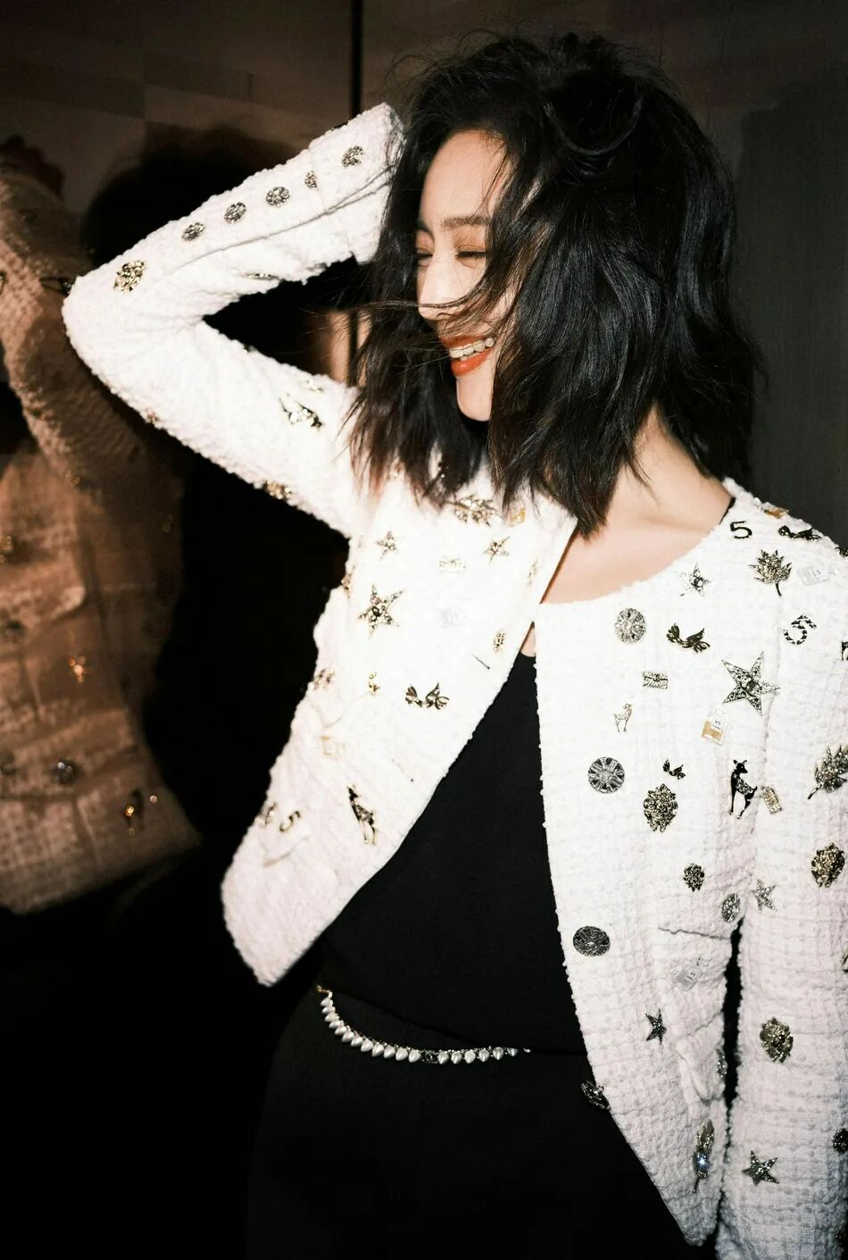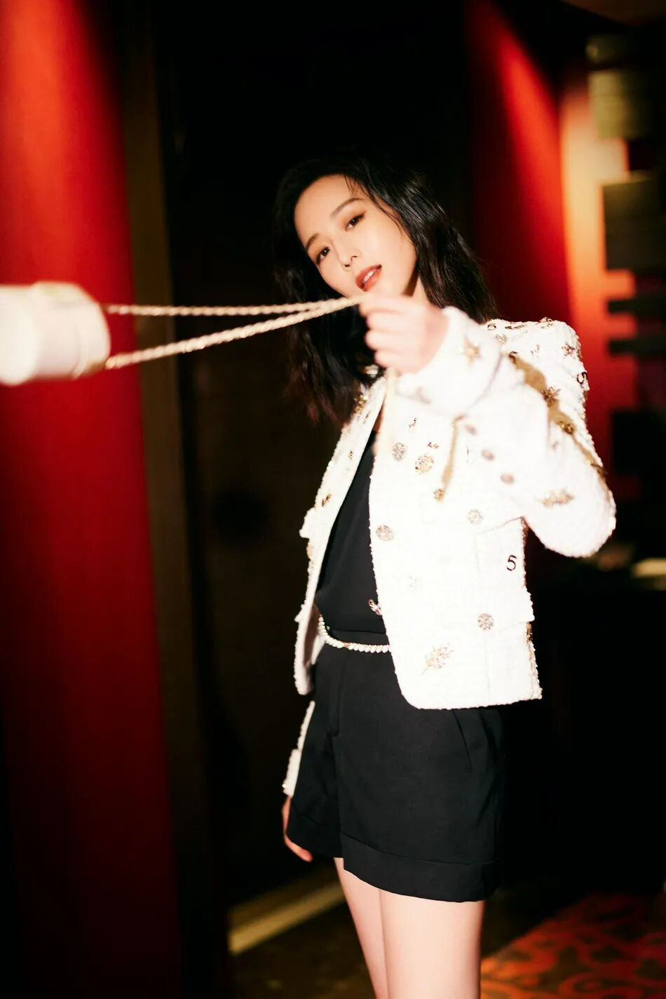 张钧甯身穿一袭白色亮片外套,搭配黑色小短裙,她俏脸清丽可人,明亮的大眼睛很是妩媚,乌黑的大波浪长发,绝对靓丽多姿。