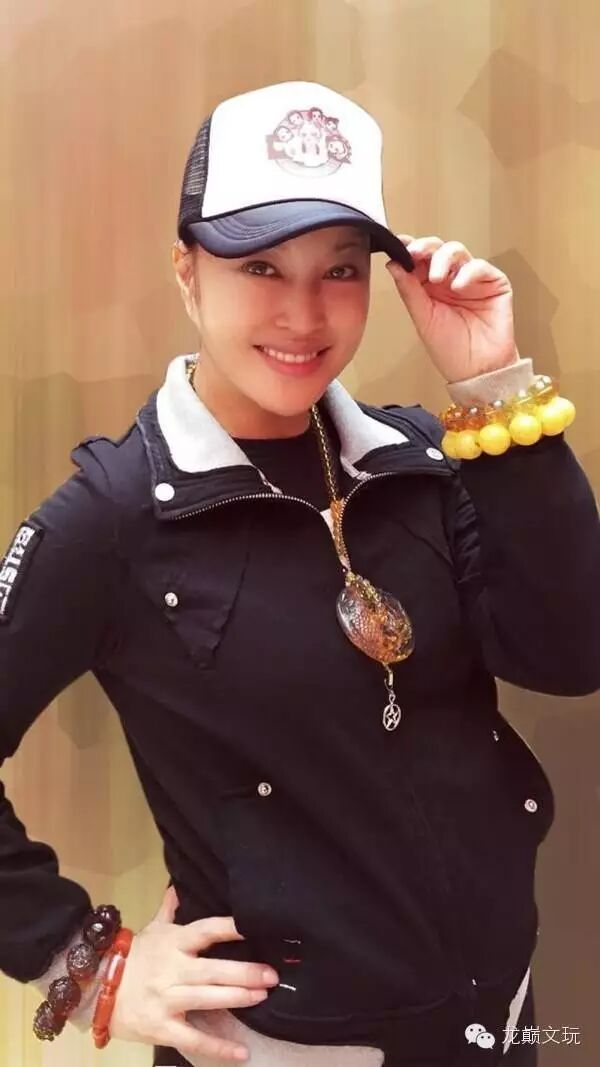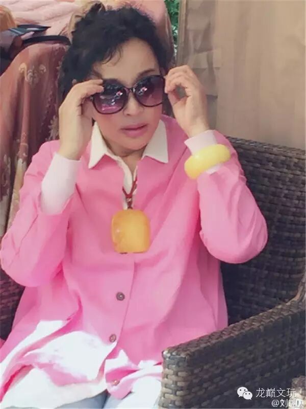 除了翡翠之外,近来刘晓庆又开始迷恋蜜蜡,她曾在微博中晒出一组照片,60岁的她穿着粉红色风衣,脖子上挂着蜜蜡大吊坠,左腕上戴着蜜蜡镯子,右手还提溜着一串,简直就是蜜蜡的代言人!