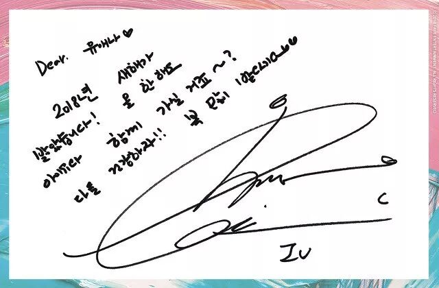 180104 官方更新IU给U爱娜签名一则Dear U爱娜
